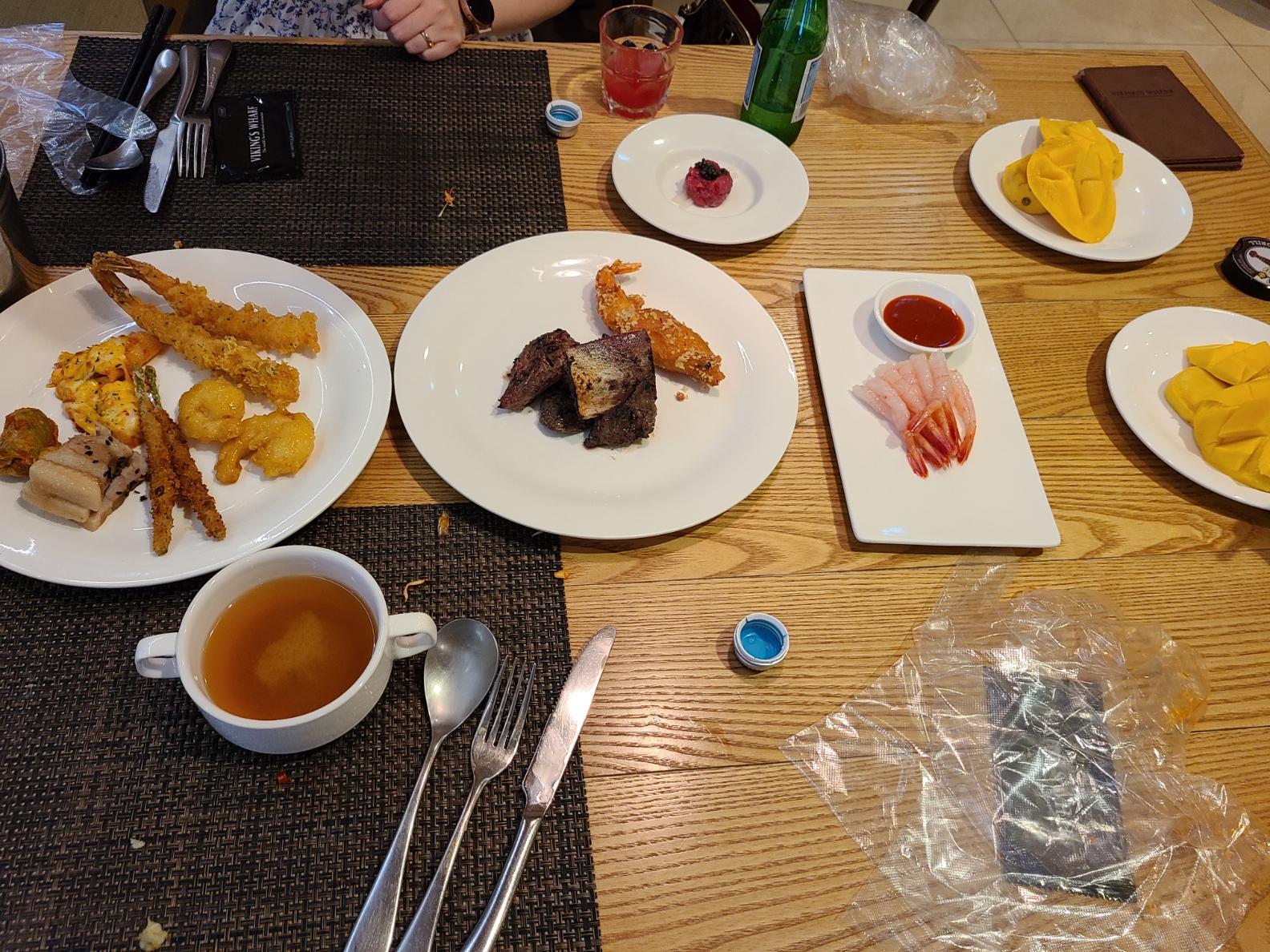 - 많이 붐비는 시간이 아니여서 그런지, 일반 뷔페처럼 운영되었고 갈비의 경우 주문을하고 테이블번호를 알려주면 진동벨을 주고 다 되면 찾아가는 방식이였다