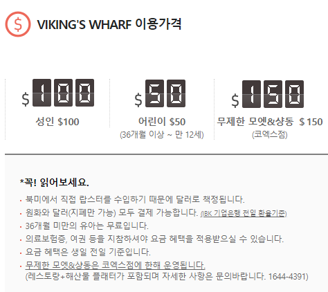 1. 가격: 성인 100$, 어린이 50$(북미에서 직접 랍스터를 수입하기 때문에 달러로 책정!)