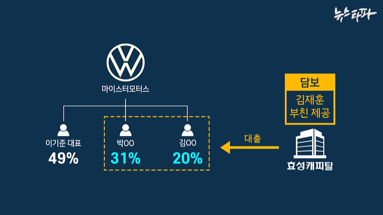 - 방법: 지인 두명을 마이스터모터스의 유상증자에 참여시킴 -> 인수자금은 효성캐피탈을 통해 대출
