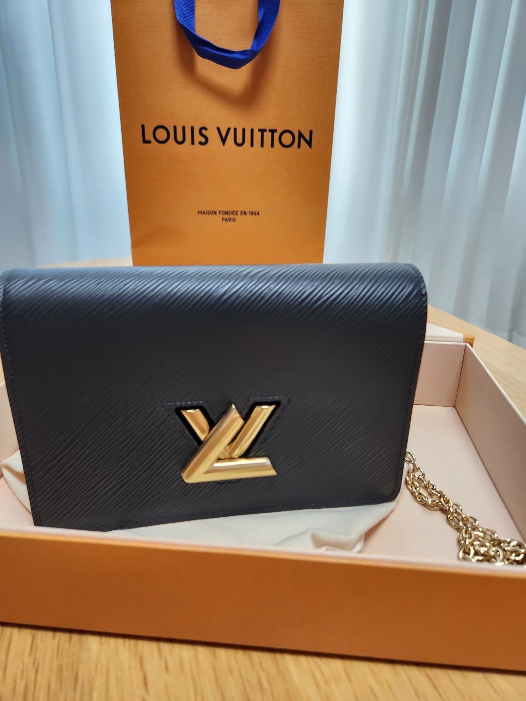 "블랙 에피 가죽 소재에 골드 톤 금속 장식을 더해 완성한 트위스트 벨트 체인 파우치. 클러치나 숄더백으로 연출하거나 벨트 뒷면 루프를 활용하여 스타일링할 수 있는 모던한 디자인. 스마트폰 등 일상에 꼭 필요한 소지품을 안전하게 보관할 수 있는 LV 트위스트 락."