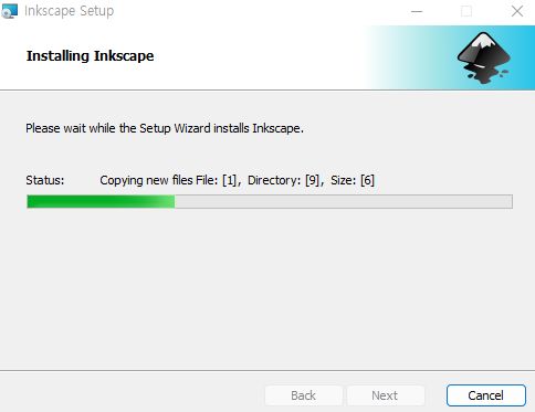 - 잉크스케이프 사이트 -> 다운로드 클릭 -> 다운로드 자동 실행 -> MSI파일 실행 -> Install 버튼 클릭-> 설치 *다 Next만 클릭 -> 바탕화면에 잉크스케이프 아이콘 더블클릭해서 프로그램 실행