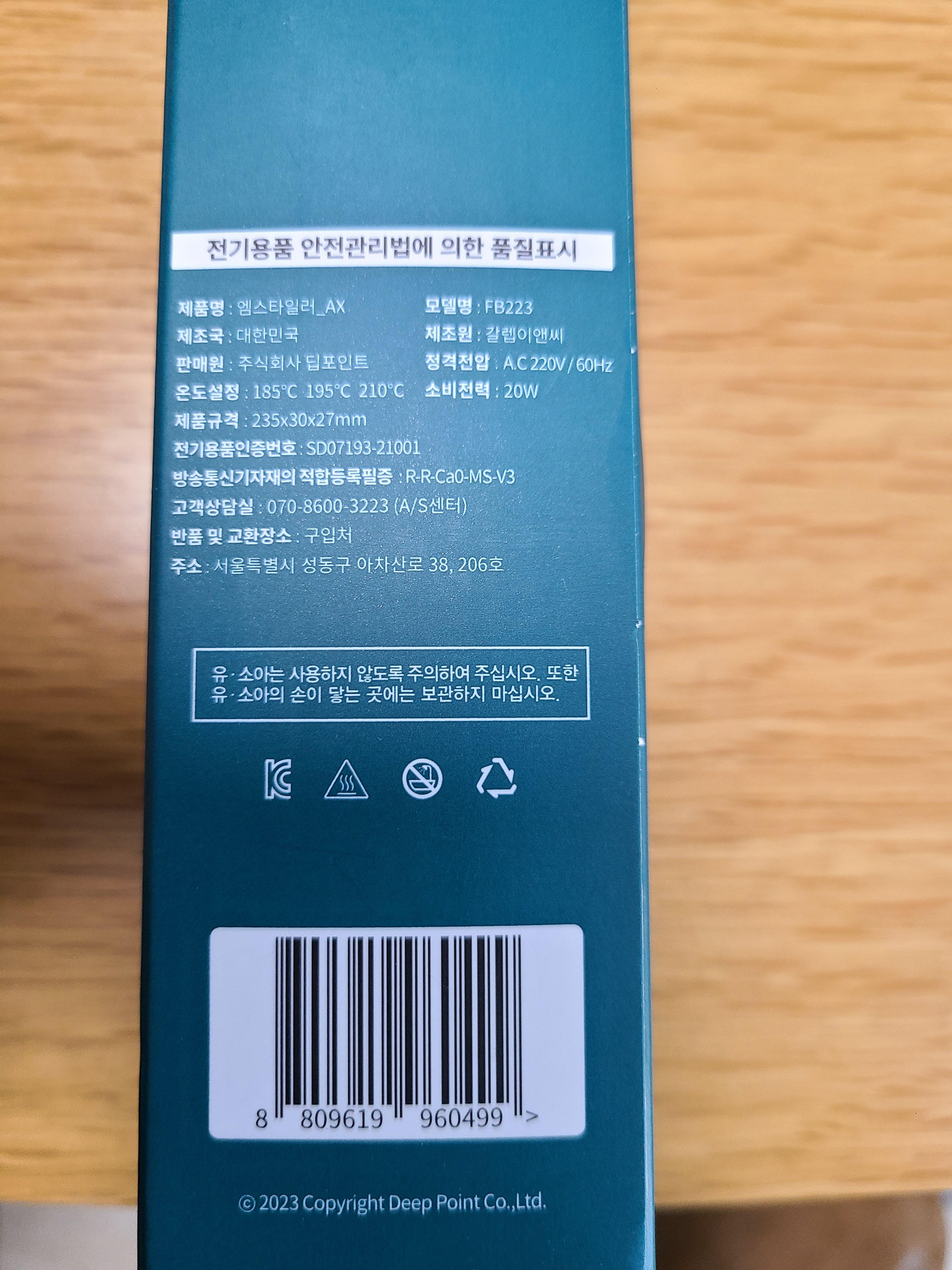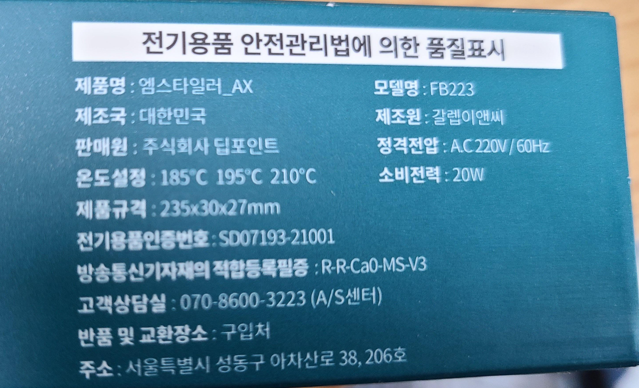 제조국이 대한민국이라 좀더 믿음직했고 온도 설정도 185도 195도 210도 3가지로 원하는 스타일링 있을 때 설정할 수 있도록 되어 있었다