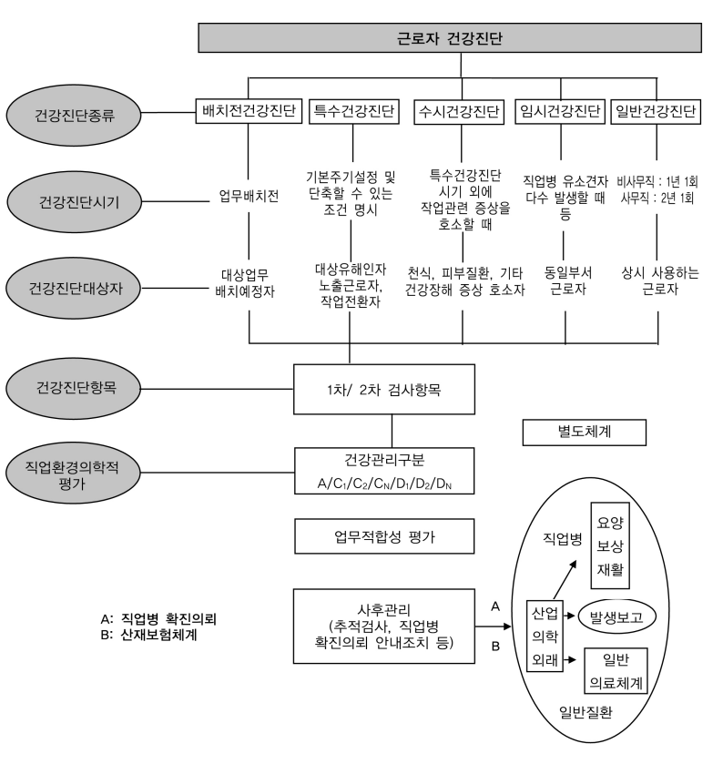 (건강진단 종류, 건강진단 시기, 건강진단대상자, 건강진단 항목, 직업환경의학적평가)