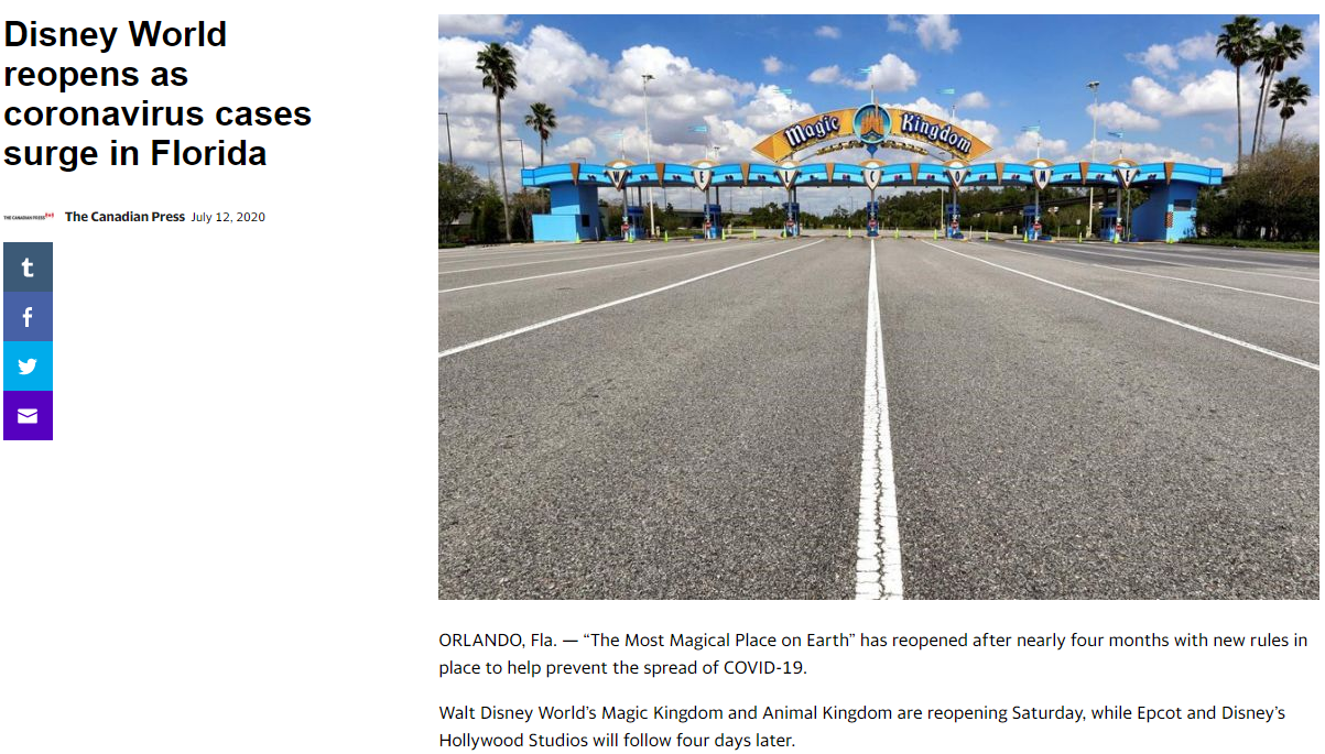 디즈니 월드 재개장, 미국 해변 개장 등등 경제 개방 조치는 쉬지않고 진행되고 있다.