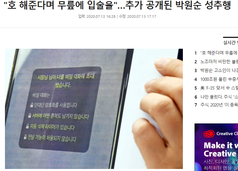 국내에서는 박원순 시장의 자살 사건이 있었다